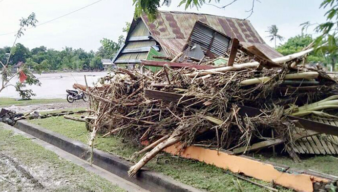 "Kabupaten 109 mengungsi, 53 rumah rusak yairu 15 rusak berat, 28 rusak sedang, 9 rusak ringan dan 1 rumah hanyut, 2 fasilitas pemerintahan, 1 jembatan, 1 fasilitas pendidikan," ungkap Sutopo.